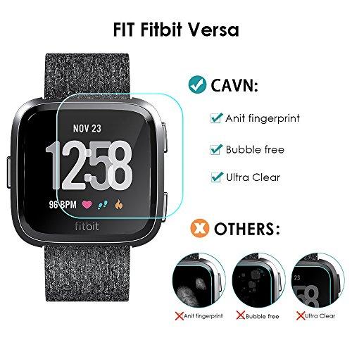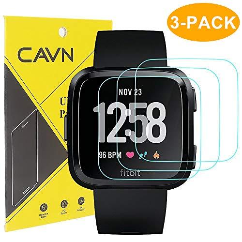 CAVN Fitbit Versa Screen Protector (3 Packs) Waterproof Tempered Glass Screen Protective Cover Saver for Fitbit Versa Smart Watch Touch Sensitively Clear HD Anti-Scratch Anti-Bubble