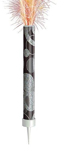 Transform a birthday celebration into a sizzling spectacle with these exciting Glitz Black Birthday Fountain Candles. Featuring a holographic black and silver shimmering rings design, these ice fountain candles are sure to add thrills to any birthday party, anniversary party or other special event. Great as an alternative to traditional birthday candles, these indoor fireworks will turn the celebration cake into an eye-catching centrepiece! Place the fountain upright into a birthday cake or other treat so that it cannot fall over, and light the sealing paper before standing back to watch the sparks fly! The fountain should not be held in the hand or given to children under 5, and should only be sold to those over 16. Please note that the fountain may take a few moments to ignite and will burn for approximately 30 seconds.