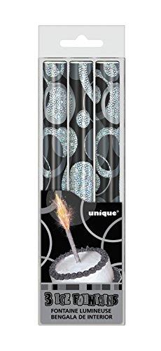 Unique Party 37329 - Glitz Black Birthday Fountain Candles, Pack of 3
